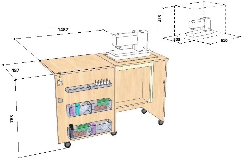 | 10-16 кг. | до 62 см. | пневмо | Стол для швейной машины Комфорт-1XXL | * для машин Brother NV 1E, Janome MC 15000, Praff icon, Husqvarna designer epic |